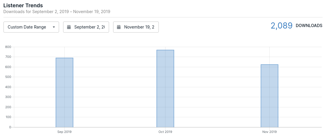 Following are some of the exciting reports we have on the podcast audience. Here are listener trends from January 2019 to November 2019: